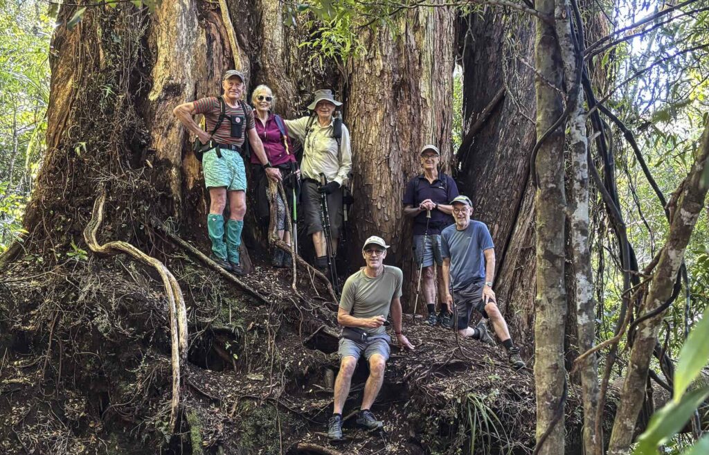 Weather put the kaibosh on Wednesday’s walks this week, but the Thursday walkers enjoyed a pleasant evening for their walk around home territory in Churton Park. A small, select group of Friday walkers were led by Gary into the Akatarawa Forest to the biggest northern rata in the country. (Ed: In my opinion, this is one of the best walks – the magnificent rata, of course, but the bush is diverse; the walk, itself, has variety – some slippery descents, lots of tree roots, walking along the stream bed of the Little Akatarawa River with some small areas involving slightly testing climbs over slippery rocks – and requires a degree of dexterity; and all away from the madness of the rest of the world! Thank you, Gary.)