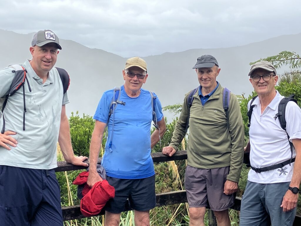 The group of 22 Friday walkers gathered at the Cross Creek entrance to the Remutaka Incline walkway. Photo taken by Bill, as is the following photo taken at the lookout close to the summit. Views from the lookout were obscured by low, misty cloud.