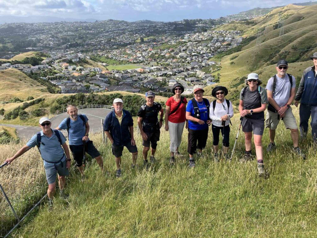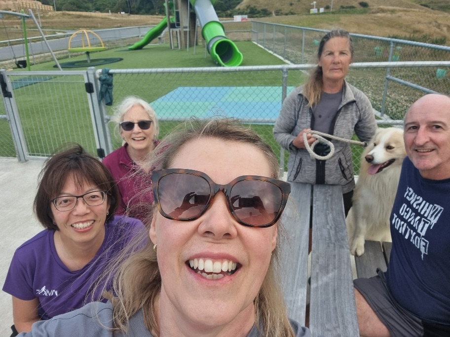 Thursday’s group headed out on January 8th for their first group walk of 2026.  Thanks to Gillian Mills for the photo which appears to have been taken in the new playground in Rochdale Drive, Churton Park.  Christine Binns’ dedication to walking is demonstrated by the fact she had arrived home 15 minutes before the walk set off.  She had travelled all the way from Maungaturoto in the Brynderwyn Hills north of Auckland to Churton Park in the one day!!  Fresh air and leg-stretching was probably great therapy after a journey such as that!