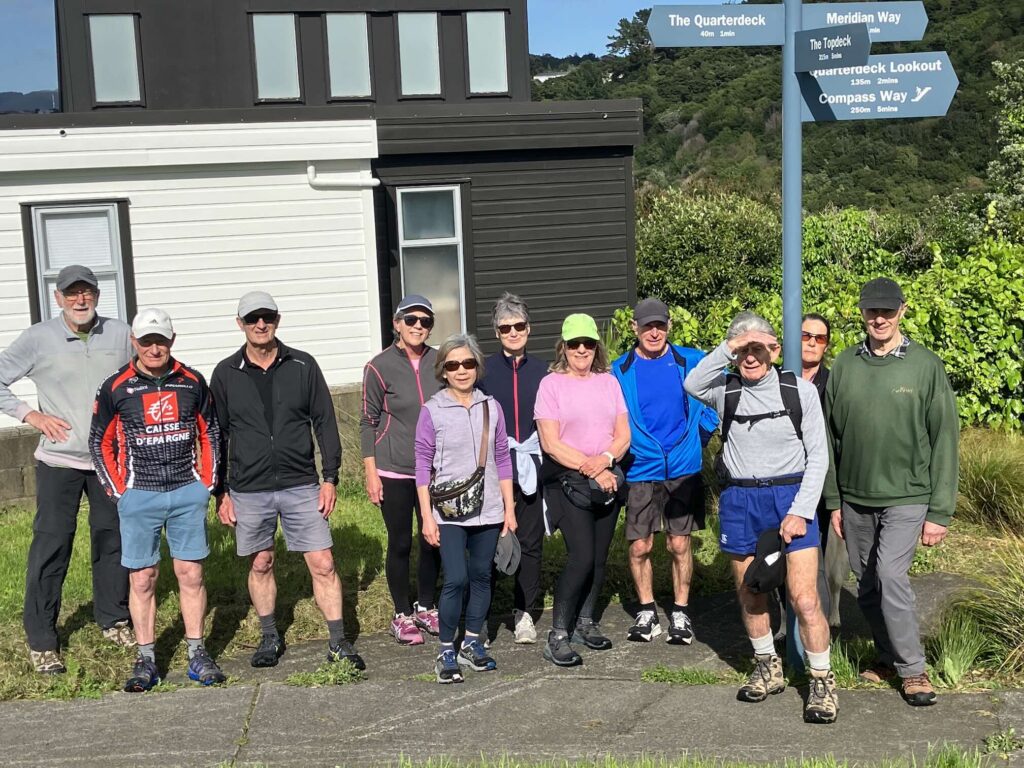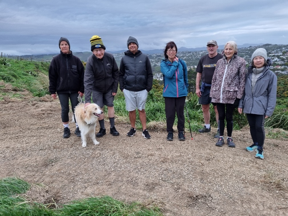 Christine Binns advised that the group was much larger this week, reflecting the improved weather. However, the nor-west gusts still kept them on their toes as they walked the CP hills! The photos were taken by Hue Ng and Gillian Mills.