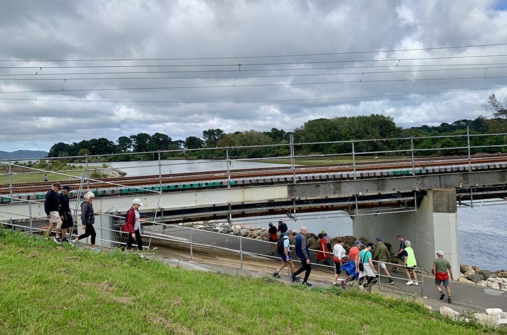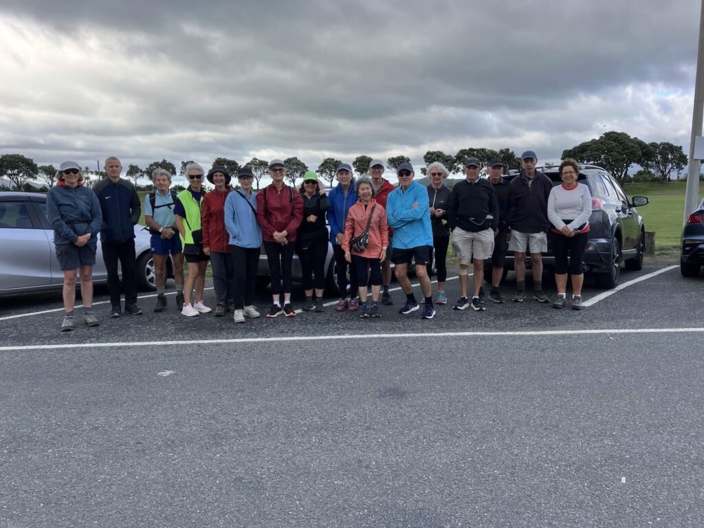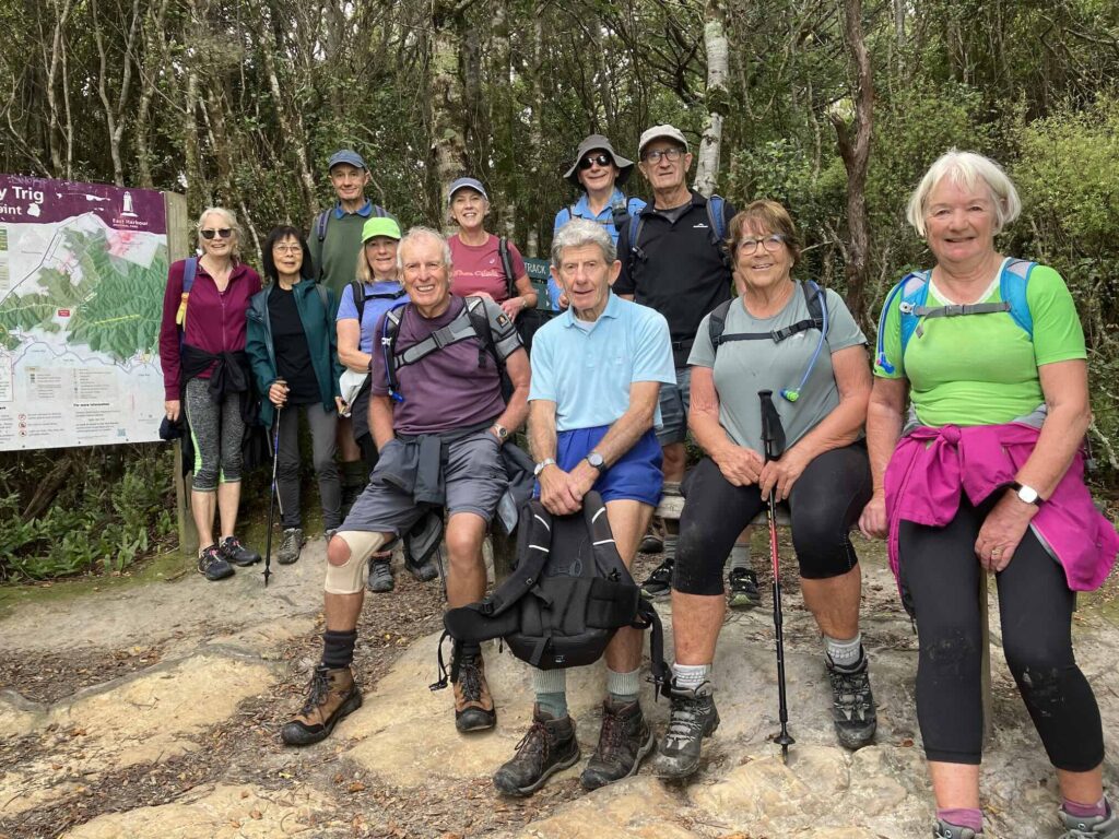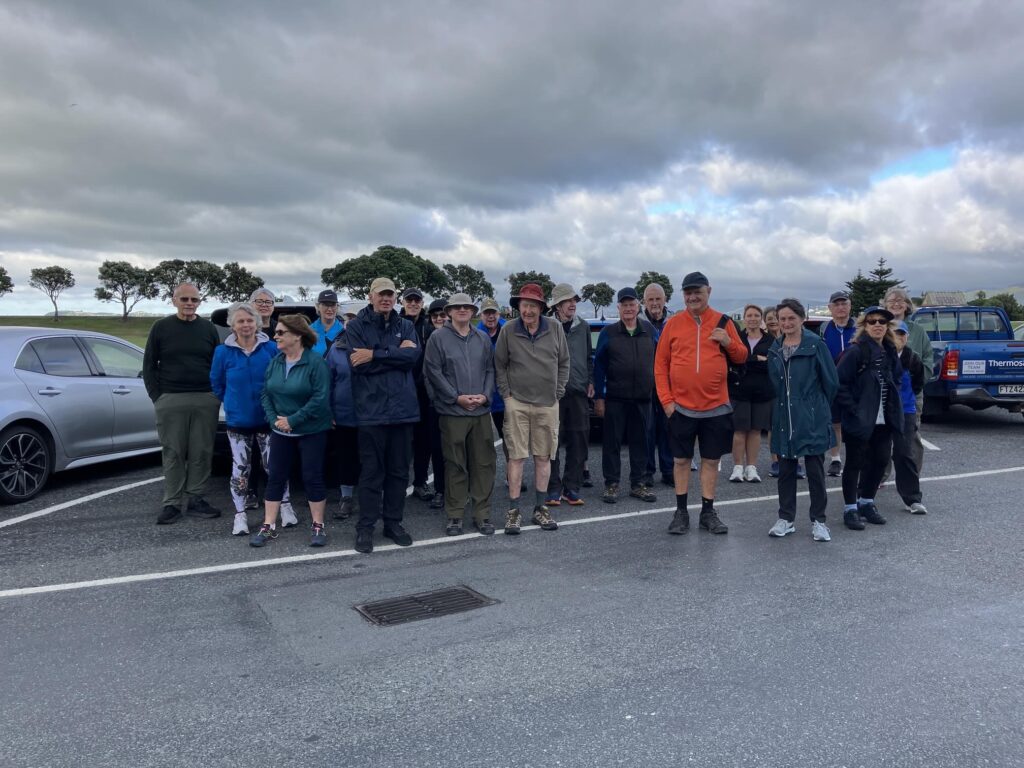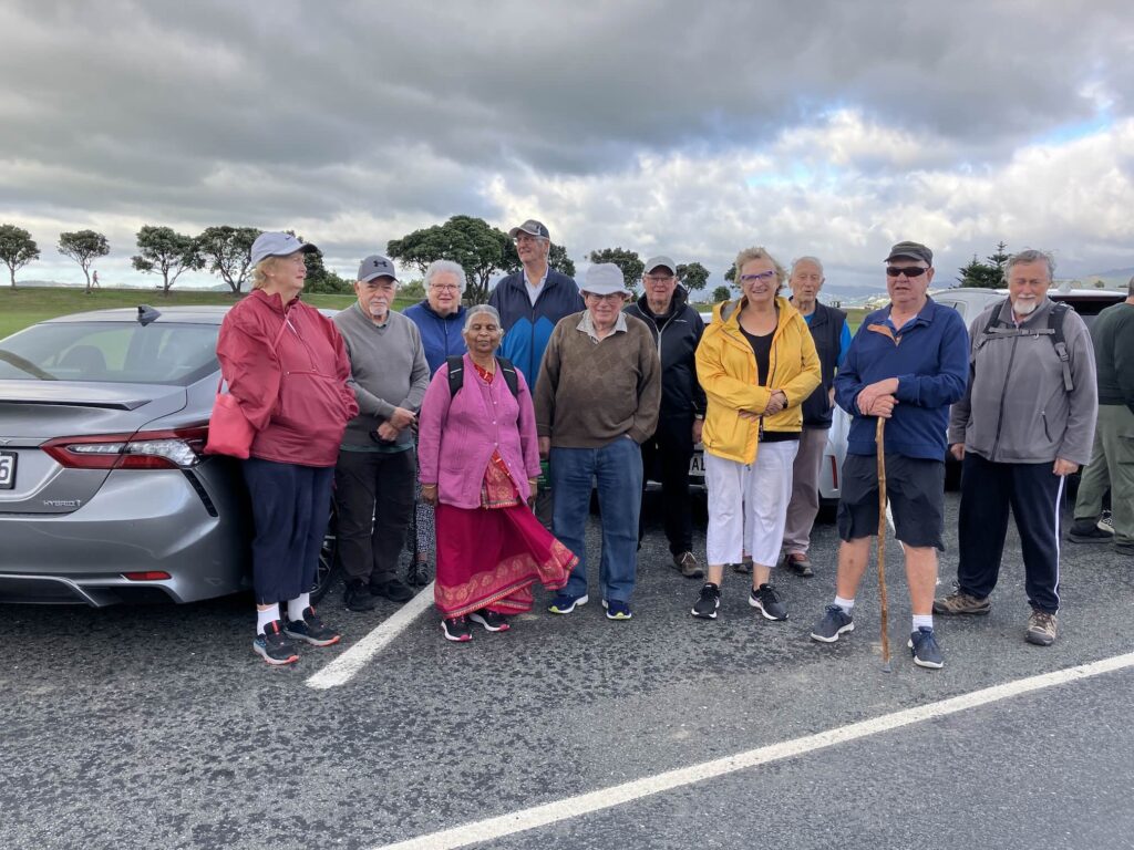 As David has outlined, all three walks were completed this week. Wednesday’s photos reflect the groups and their surroundings at and away from Te Awa Kairangi/ Hutt River; Thursday’s walkers were out and about in Johnsonville/Broadmeadows; and the Friday team – still a bit depleted in numbers due to injuries and travel – were guided by Clint on various challenging bush tracks (see Russell’s definitions above!) between Lowry and York Bays and Wainuiomata. The Friday walkers also spent some time on footpaths, roads and walkways. They were also asked to leave a walkway under construction along Marine Drive – there was a temptation to leave a mark from CPCW in the newly poured concrete, but it was resisted!