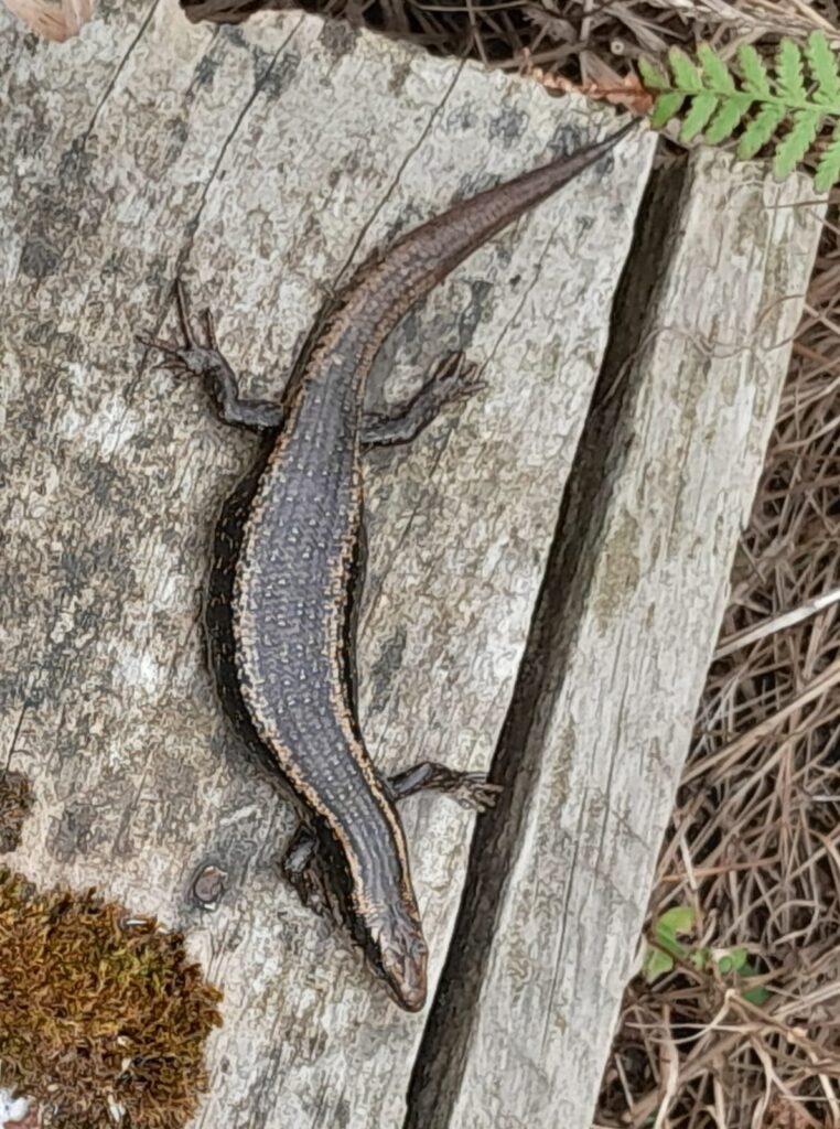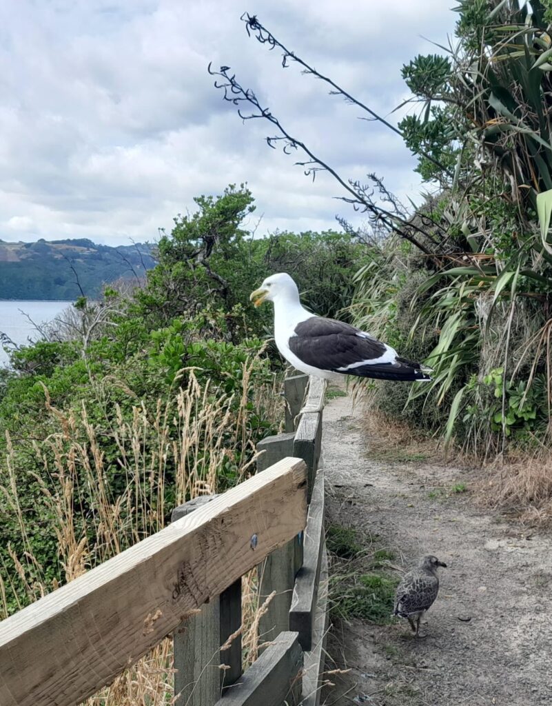 All walkers who traversed one of the western paths contended with a very protective mother gull whose sizeable chick was not yet able to fly. David captured the two juxtaposed and also caught the colouring of the skink in the next photo.
