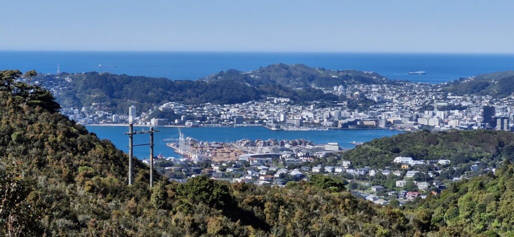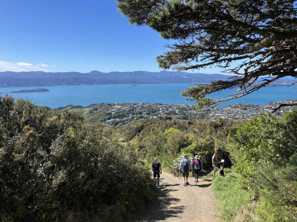 This week’s photo was taken by Hue Ng on Wednesday’s walk and shows the view down towards Kaiwharawhara from the Old Porirua Road.