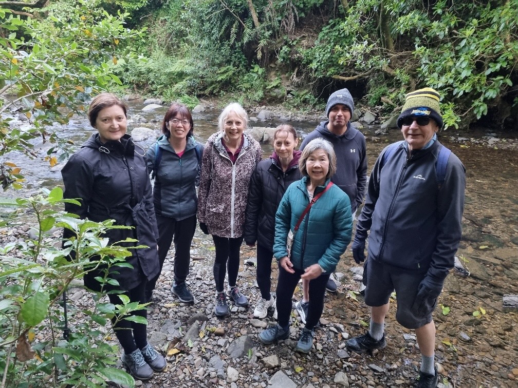 Gillian Mills has kindly provided the photos of the Thursday walkers who escaped the wind by walking in Ngaio and Trellisick Park. Would have been good to have a photo after they had taken their dip in the stream!!