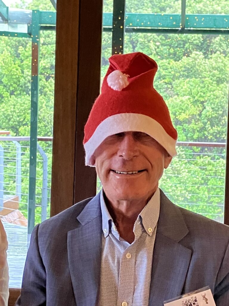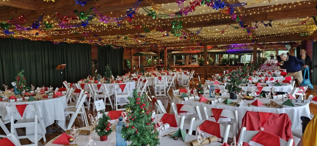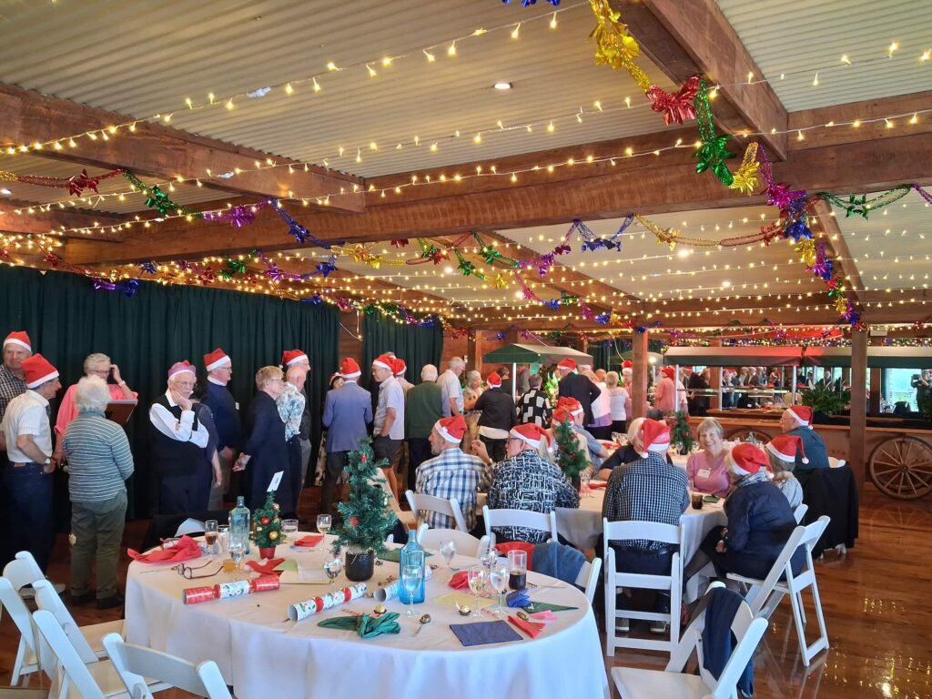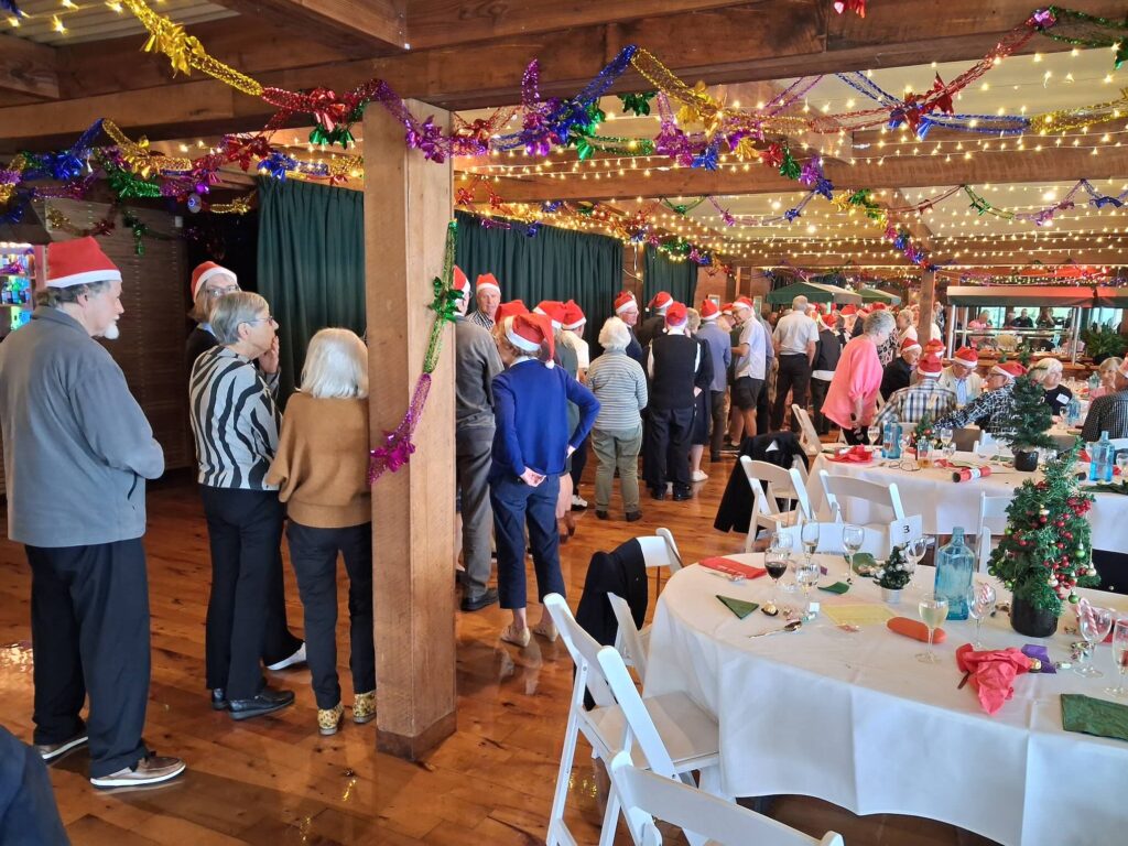 You will note the link earlier in the newsletter to Mike Drain’s excellent photos from the lunch. Here are a few tasters. Rowena Rowe and Wendy Bentley captured the room in all its Christmas glory before the hordes descended. Janet Tyson caught the queue for dessert. Bill Gaudie snapped Santa masquerading as Papa Smurf!